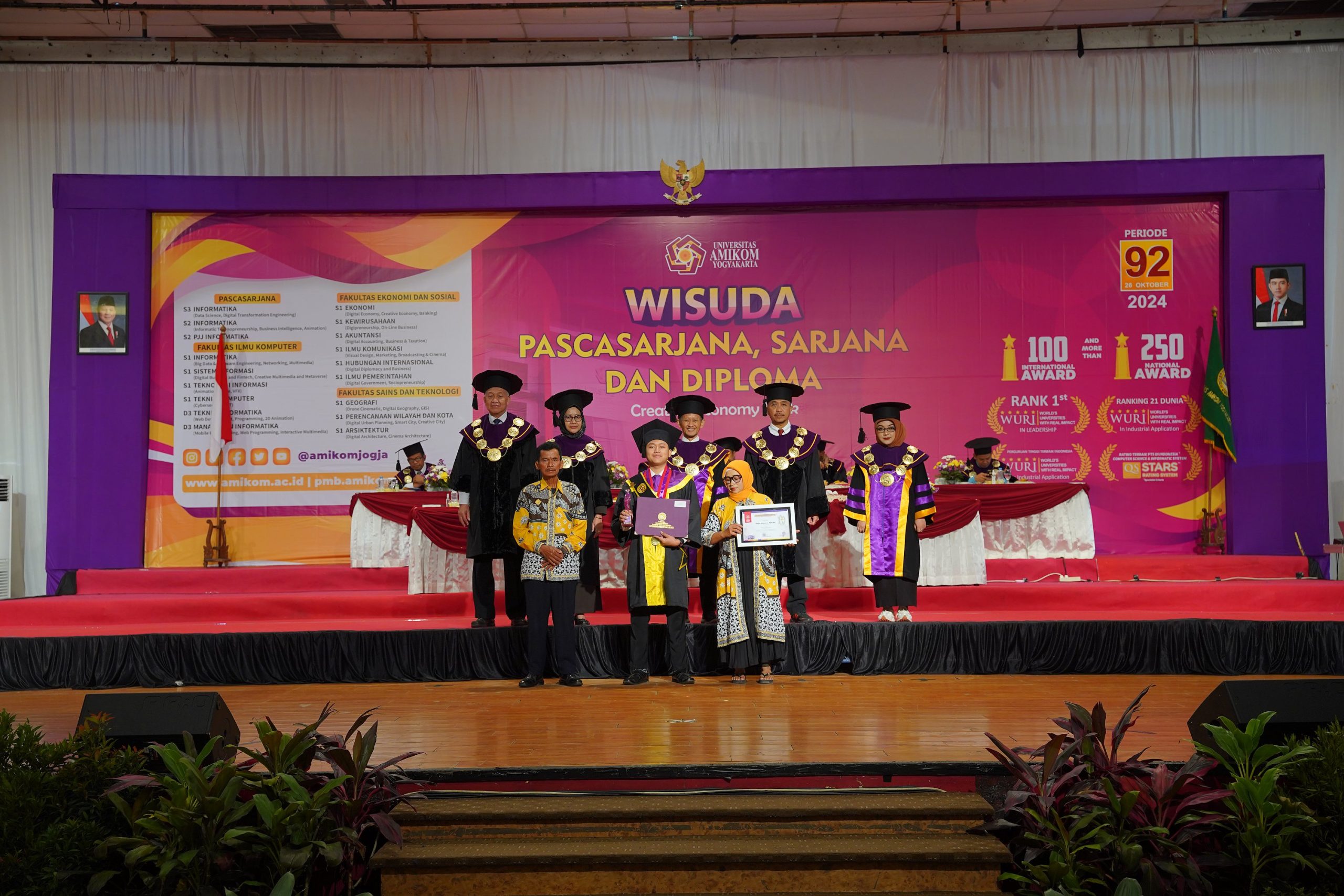 Yogyakarta, 26 Oktober 2024 – Sebanyak 1.002 wisudawan dan wisudawati mengikuti Wisuda Periode ke-92 Universitas AMIKOM Yogyakarta di Grand Pacific Convention Hall. Acara yang berlangsung dalam dua sesi, pagi dan siang, ini menjadi momen bersejarah bagi para lulusan dari jenjang Pascasarjana, Sarjana, dan Diploma Tiga.