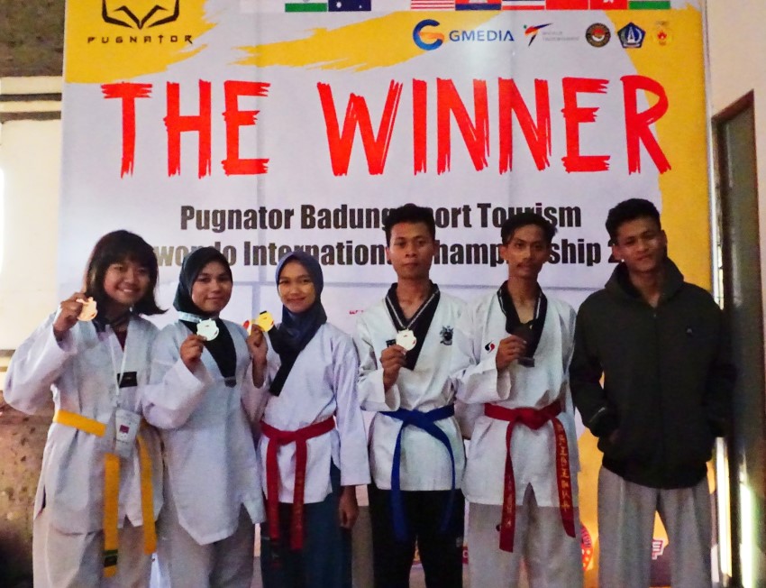 UNIVERSITAS AMIKOM YOGYAKARTA – Unit Kegiatan Mahasiswa Taekwondo Universitas AMIKOM Yogyakarta berhasil menyabet pulang 5 medali dalam event kejuaraan Internasional “Pugnator Badung Sport Week Open International Championship 2019” di GOR Purna Krida, Badung Bali, Indonesia