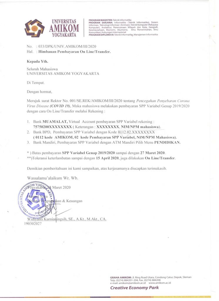 Himbauan Pembayaran Secara Online Untuk SPP Variabel Genap 2019/2020