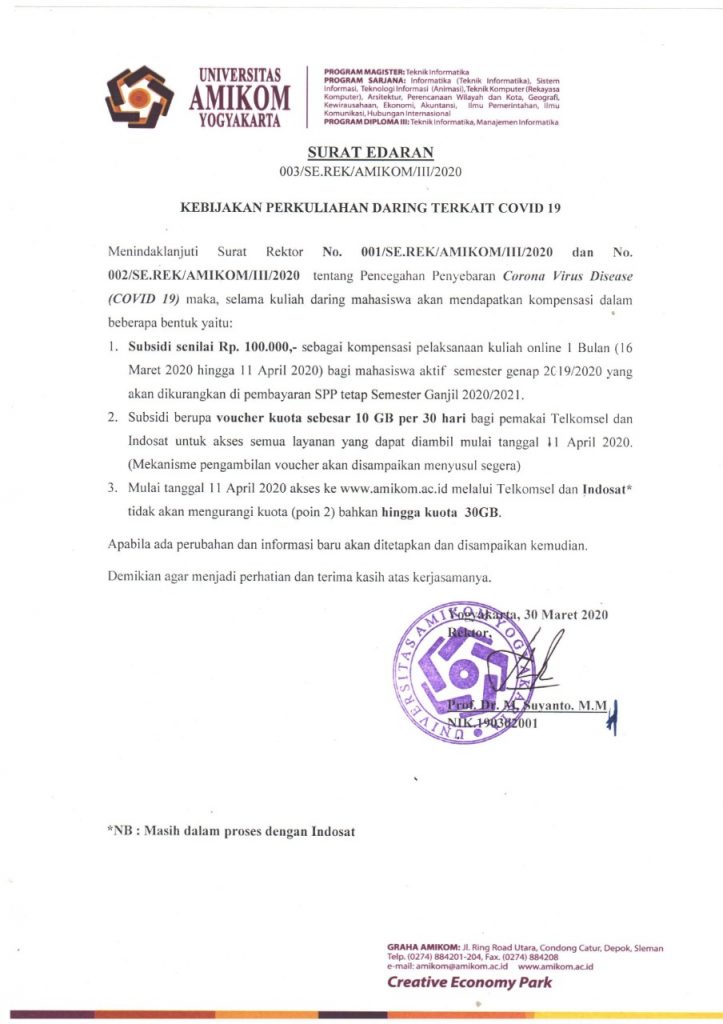 Kebijakan Perkuliahan Daring Terkait Covid-19