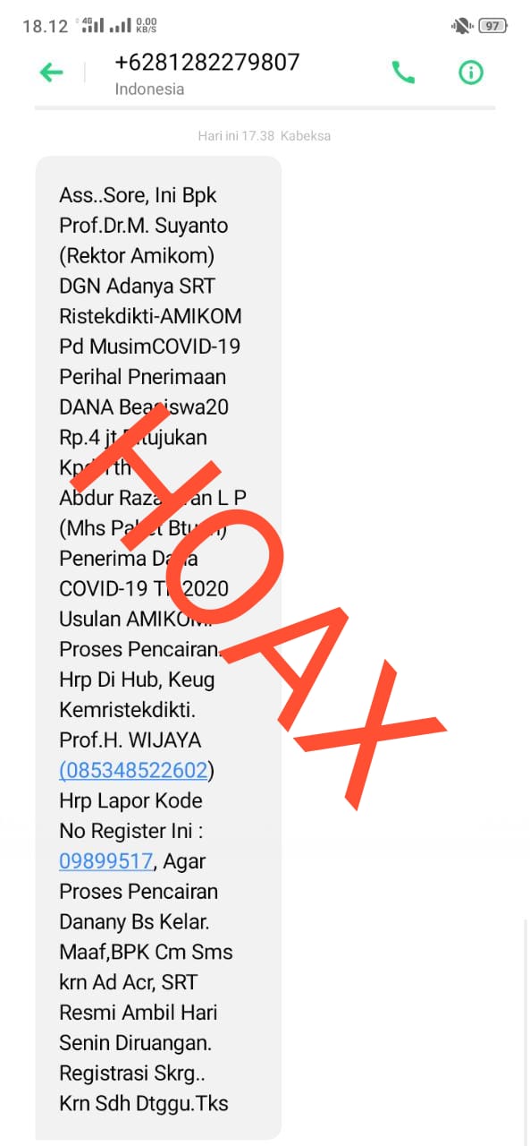 Kepada seluruh civitas akamedika Universitas AMIKOM Yogyakarta, diharapkan untuk berhati – hati terhadap informasi hoax yang berkembang saat ini yang mengatasnamakan Pimpinan, Dosen, dan Karyawan Universitas AMIKOM Yogyakarta. Semua info terkait AMIKOM sudah di share di website amikom.ac.id dan seluruh medsos amikom. Nomor hotline yang bisa dihubungi: