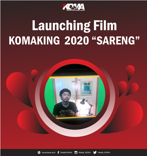 Launching Film KOMAKING kali ini dilaksanakan dengan gaya baru, yaitu mode online. Tepat pada perayaan kemerdekaan Indonesia ke 75 tahun yaitu Senin, 17 Agustus 2020 melalui Youtube KOMA Amikom. Bagi yang ingin melihat pemutaran film “Sareng” dianjurkan untuk melakukan registrasi terlebih dahulu.