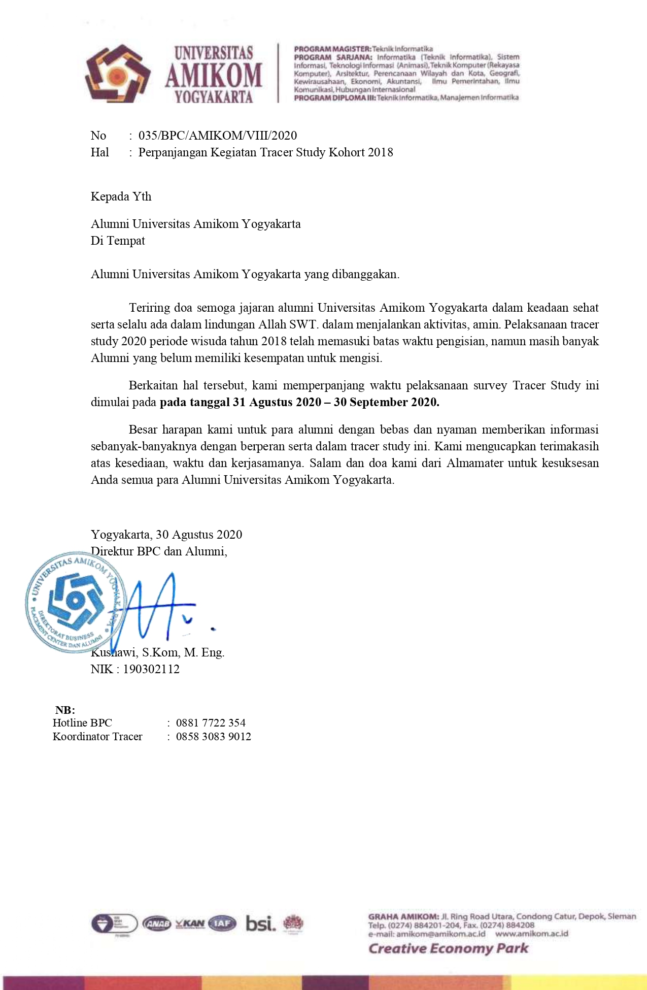Perpanjangan Kegiatan Tracer Study Kohort 2018