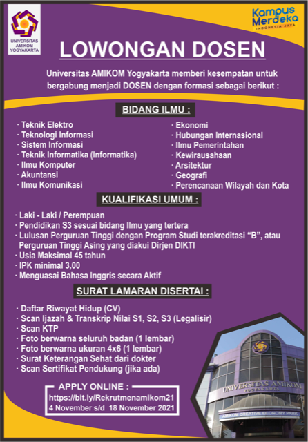 LOWONGAN DOSEN 2021 UNIVERSITAS AMIKOM YOGYAKARTA