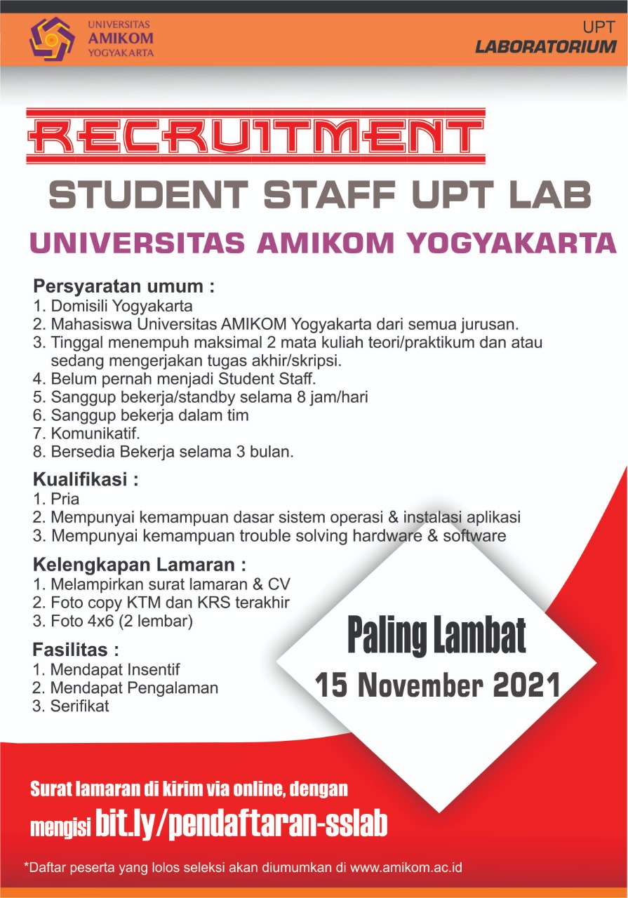 Recruitment Student staff UPT Lab Universitas Amikom Yogyakarta