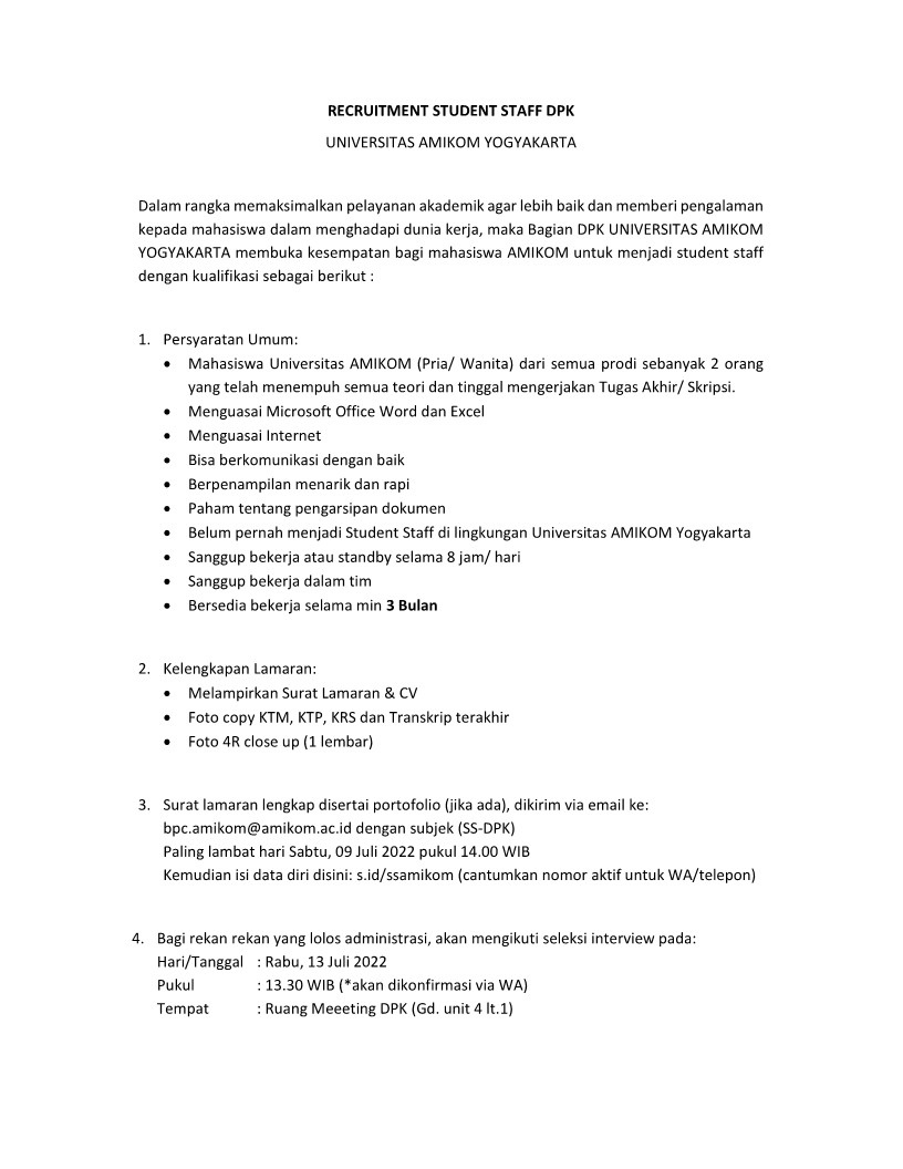 Open Recruitment Student Staff DPK