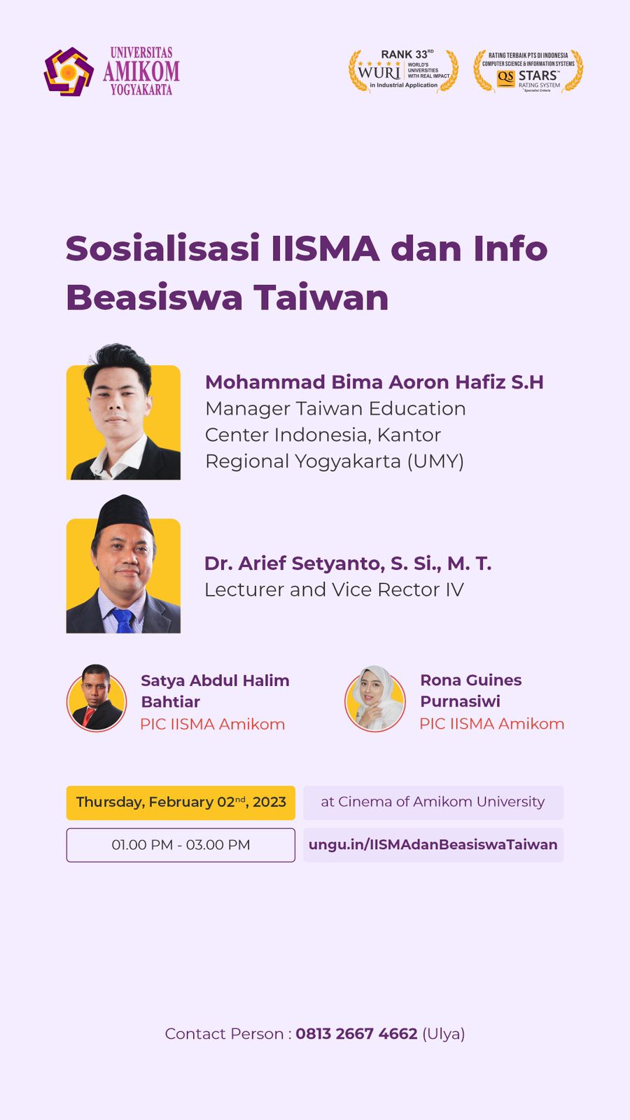 Contact Person: 081326674662 (Ulya)