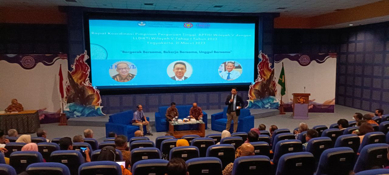 Rapat Koordinasi Pimpinan (RAKORPIM) APTISI Wilayah V dengan LLDIKTI Wilayah V digelar di Ruang Cinema Universitas AMIKOM Yogyakarta pada Selasa, 21 Maret 2023. Rapat koordinasi ini diadakan dalam rangka pembinaan dan evaluasi bidang mutu perguruan tinggi tahap I tahun 2023.