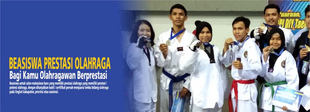 Beasiswa diberikan kepada calon mahasiswa baru yang memiliki prestasi olahraga, dengan ditunjukkan bukti prestasi olahraga di sekolah atau lomba bidang olahraga pada tingkat kecamatan, kabupaten, provinsi, nasional atau internasional. Lomba yang dimaksud adalah lomba yang dilaksanakan secara berjenjang dan diselenggarakan oleh organisasi pemerintah atau swasta. Besaran beasiswa 30% – 100% dari biaya Dana Pengembangan Perguruan Tinggi yang diberikan dan dialokasikan per semester dalam bentuk voucher (bukan uang).