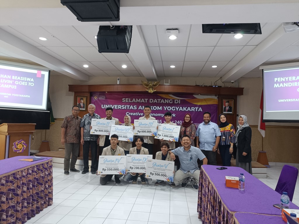 Sebanyak 11 mahasiswa Universitas Amikom Yogyakarta berhasil meraih beasiswa “Mandiri livin’ Goes to Campus” yang diberikan oleh Bank Mandiri. Acara serah terima beasiswa ini sendiri diadakan di Ruang Citra 1 Universitas Amikom Yogyakarta (19 Desember 2023),