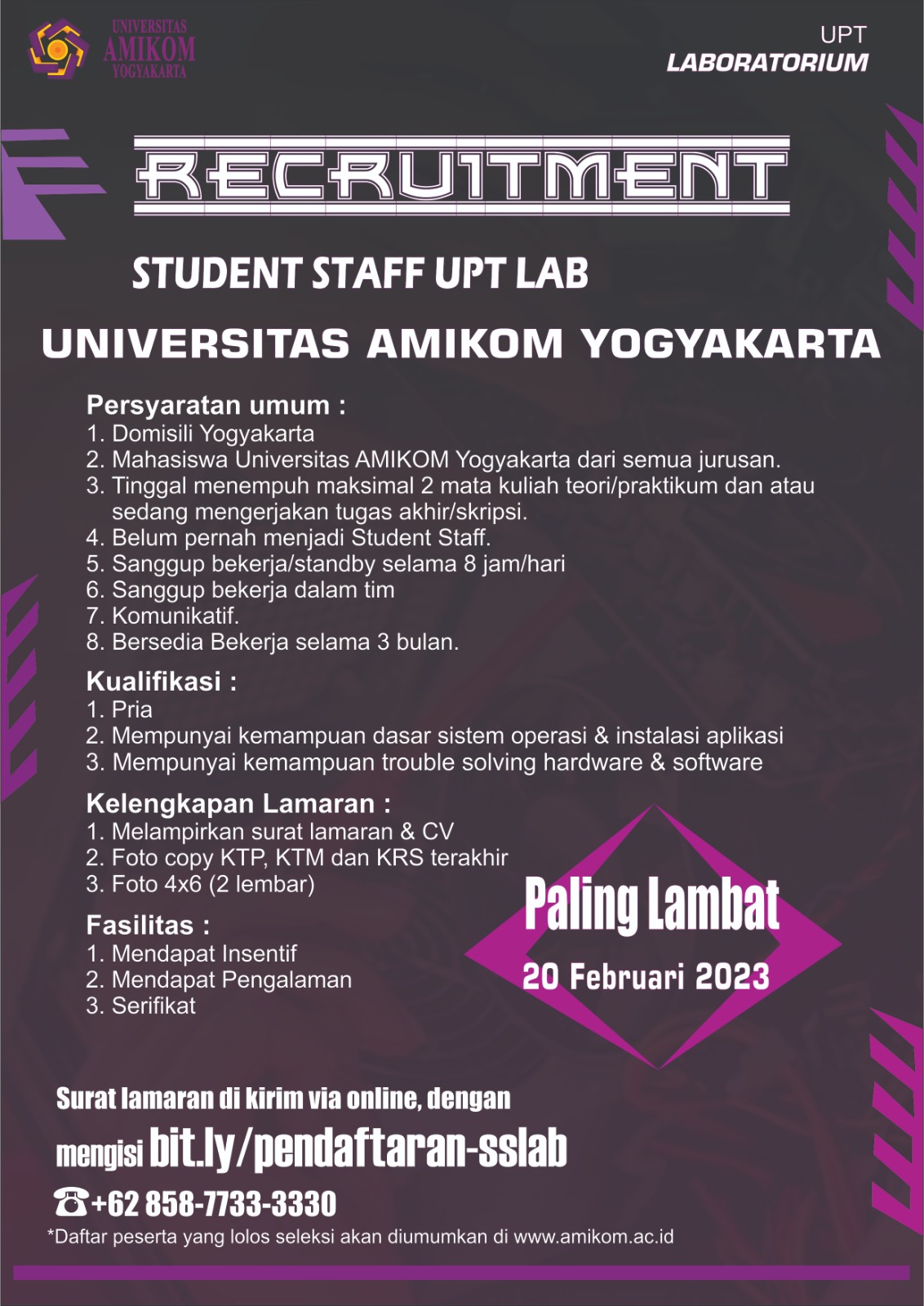 Recruitment Student Staff UPT Lab Universitas Amikom Yogyakarta