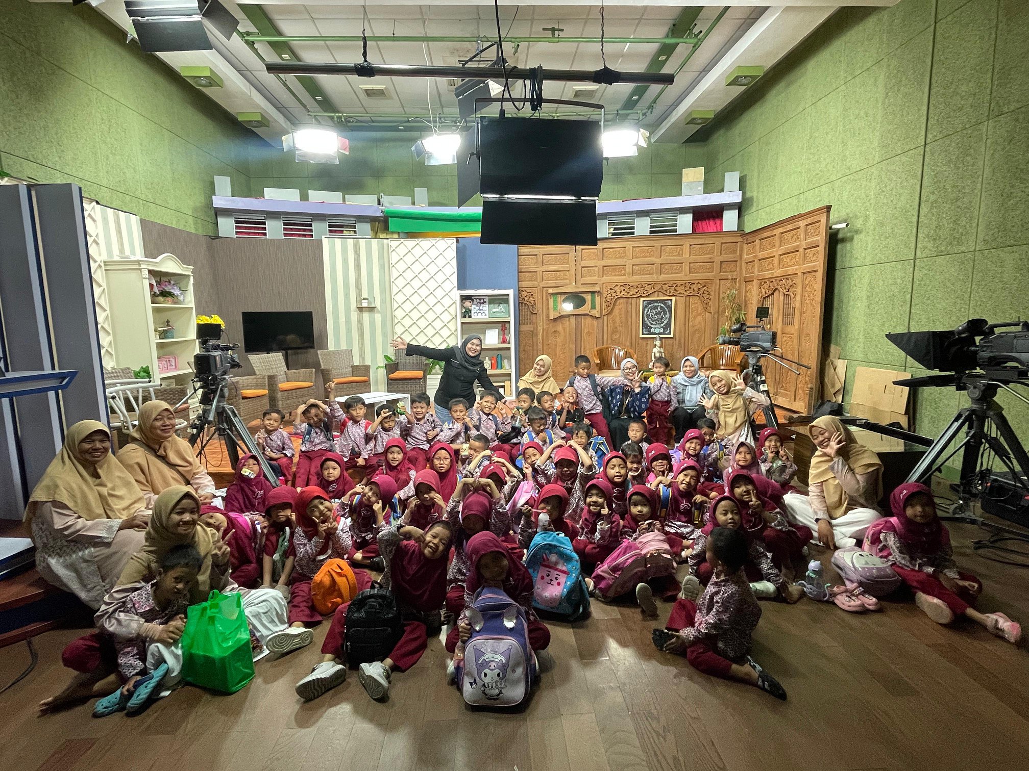 Setelah sesi di studio radio, rombongan beralih ke Studio TV RBTV. Di sana, anak-anak melihat bagaimana proses produksi program televisi dilakukan, mulai dari pengaturan kamera hingga penggunaan green screen. Mereka juga mendapatkan penjelasan tentang peran kru TV seperti kameramen, editor, dan penyiar, sehingga mereka bisa melihat lebih dekat bagaimana sebuah program televisi dibuat.