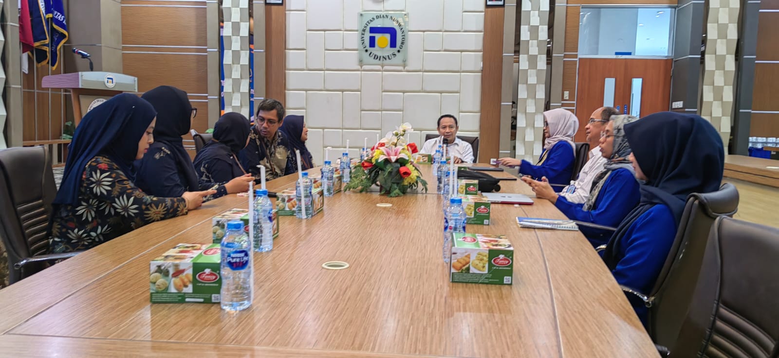 Kepala Lembaga Kerja Sama dan Urusan Internasional Udinus, Dr. Ir. Dwi Eko Waluyo, M.M. memberikan apresiasi atas kunjungan tim DKUI dan menyampaikan pentingnya kolaborasi antar perguruan tinggi untuk mendukung kemajuan pendidikan di Indonesia.