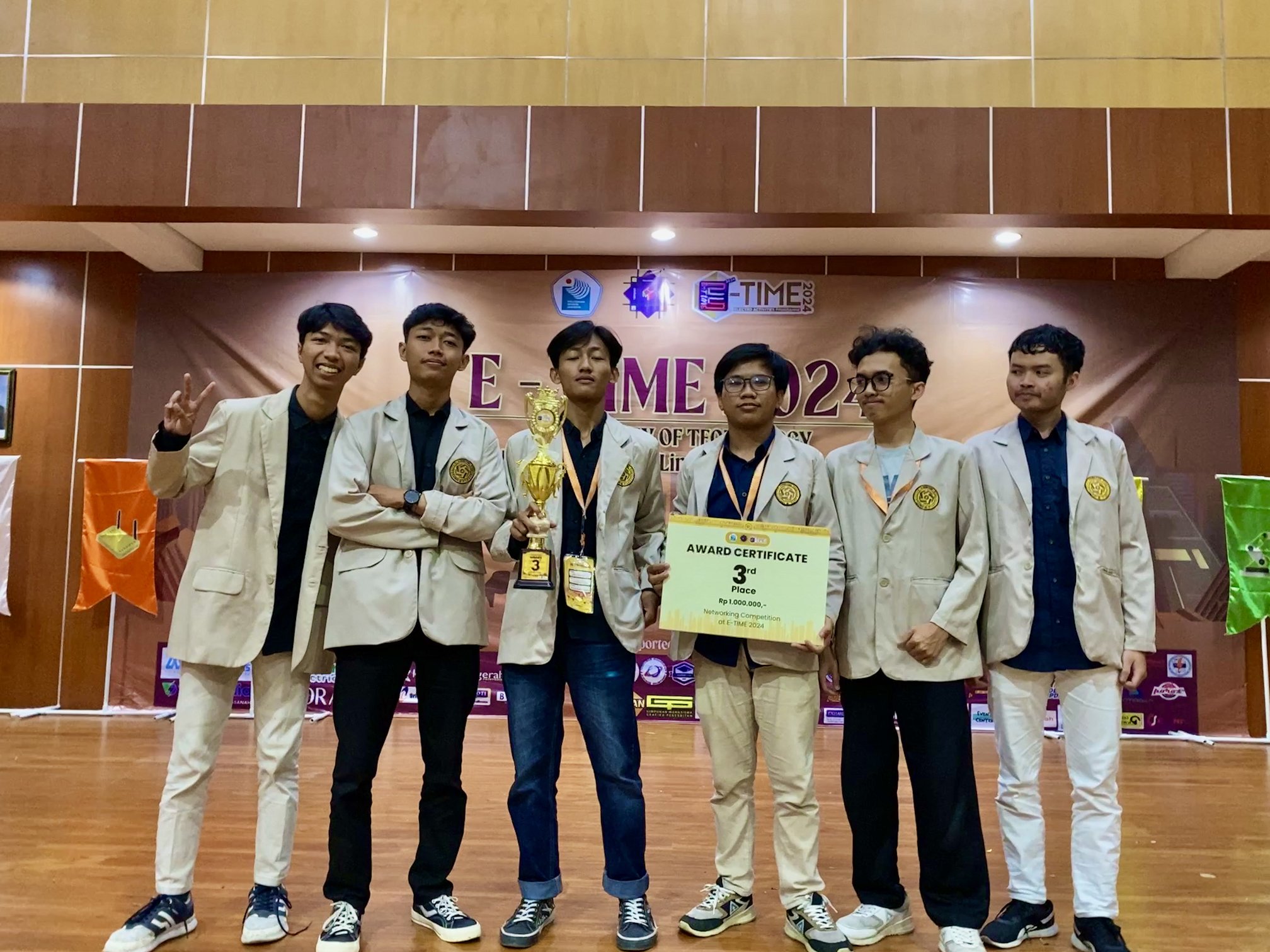 Mukhlis Nur Arif dan Danang Tri Atmaja, mahasiswa Program Studi Teknik Komputer Universitas Amikom Yogyakarta, berhasil meraih prestasi membanggakan dengan memperoleh Juara 3 pada kategori Networking di ajang Electro Activities Programme (E-TIME) 2024 Pada 6 Agustus 2024 di Politeknik Negeri Jakarta. Kompetisi bergengsi berskala nasional ini diselenggarakan oleh Politeknik Negeri Jakarta dengan diikuti oleh mahasiswa dari berbagai perguruan tinggi se-Indonesia serta siswa SMA/K sederajat.