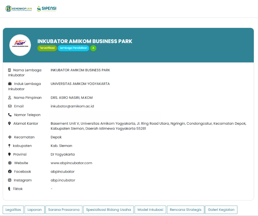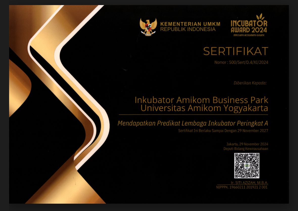 Amikom Business Park (ABP) berhasil meraih predikat Akreditasi A pada Incubator Awards 2024 yang diselenggarakan oleh Kementerian Koperasi dan UKM (Kemenkop). Prestasi ini menempatkan ABP di jajaran puncak sebagai salah satu inkubator bisnis terbaik di Indonesia.