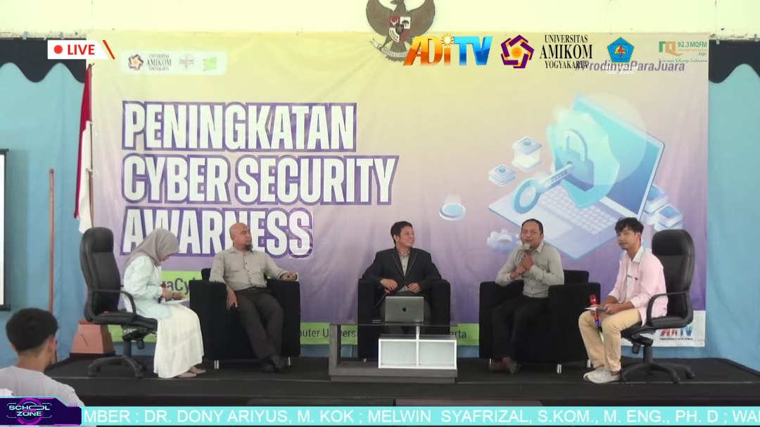 Kulon Progo, 3 Februari 2025 – Universitas Amikom Yogyakarta menggelar School Zone 2025 di SMKN 2 Pengasih, Kulon Progo, dengan tema “Peningkatan Cyber Security Awareness”. Acara hasil kolaborasi dengan Radio 92.3 MQFM Jogja dan ADI TV, ini bertujuan untuk memberikan edukasi kepada siswa tentang pentingnya kesadaran keamanan siber dalam menghadapi ancaman digital yang semakin meningkat.