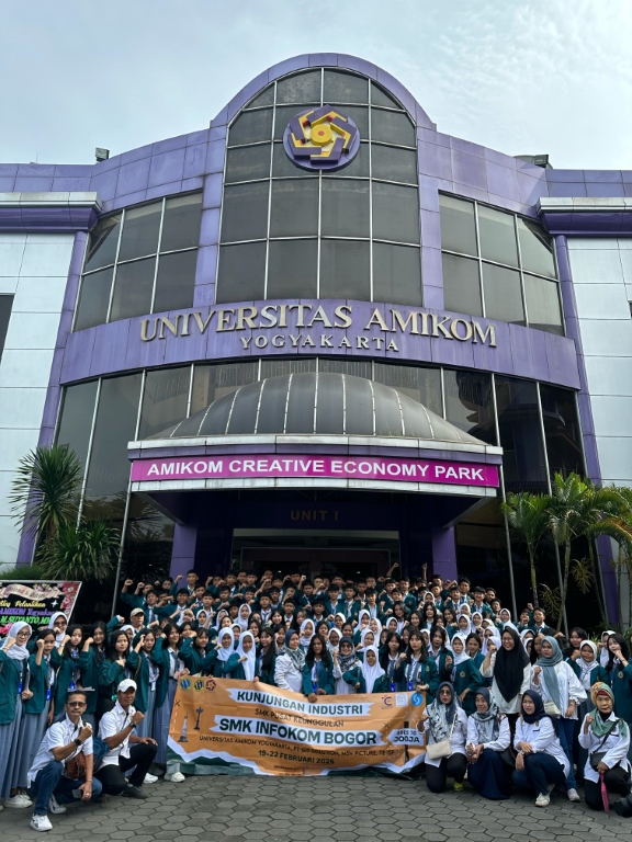 Pada Kamis, 20 Februari 2025, Universitas Amikom Yogyakarta kedatangan sekitar 400 siswa dari SMK Infokom Bogor yang terdiri dari jurusan PSPT, DKV, dan RPL untuk mengikuti kegiatan kunjungan industri yang dibagi dalam dua kloter. Kegiatan ini bertujuan untuk memberikan wawasan dan pengalaman terkait dunia industri kreatif dan teknologi yang berkembang di Universitas Amikom.