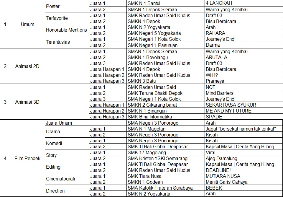 “Saya ucapkan selamat kepada para pemenang. Bagi yang belum menang, jangan putus asa. Teruslah berkarya, mungkin tahun depan bisa menang,” tambahnya.