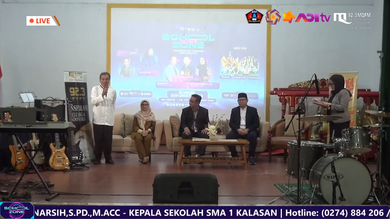 Sleman, 17 Maret 2025 – Universitas AMIKOM Yogyakarta bersama MQFM dan ADiTV menggelar acara School Zone 2025 di SMA Negeri 1 Kalasan pada Senin (17/3). Acara ini menghadirkan empat narasumber dari dunia pendidikan yang membagikan wawasan dan motivasi kepada siswa dalam menentukan langkah menuju masa depan. Dengan tema “Ini Langkahku, Setiap Langkah Punya Cerita”, kegiatan ini bertujuan menginspirasi siswa untuk berani mengambil keputusan, mengembangkan keterampilan, serta membangun mentalitas sukses di dunia pendidikan dan karier.