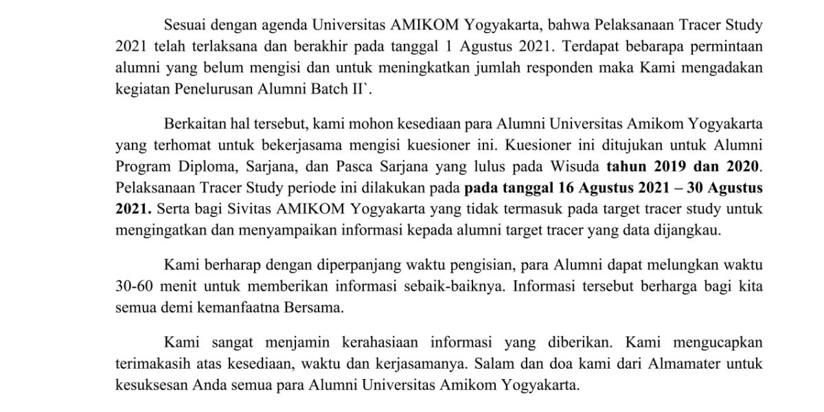 Read MoreBerdasarkan hasil seleksi Tim Beasiswa Prestasi Penerimaan Mahasiswa Baru Universitas AMIKOM Yogyakarta, maka dengan ini kami sampaikan: Daftar Lolos Seleksi Administrasi Batch 3, Beasiswa Prestasi Universitas AMIKOM Yogyakarta BEASISWA PRESTASI BATCH 3 Bagi calon mahasiswa yang lolos seleksi Administrasi, diharapkan untuk bisa mengikuti seleksi wawancara pada: Hari/ Tanggal: Kamis, 19 Agustus 2021 Pukul […]