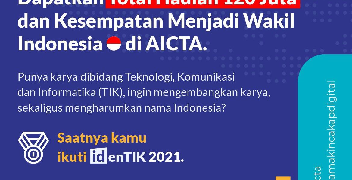 Read MoreDapatkan Total Hadiah 120 Juta dan Kesempatan Menjadi Wakil Indonesia di AICTA🇮🇩 Punya karya dibidang Teknologi, Komunikasi, dan Informatika? Segera daftarkan karya terbaikmu di idenTIK 2021! Apa sih idenTIK itu? Apa sih benefit yang di dapatkan? Kategori apa saja yang ada di idenTIK? Bagaimana ya alur pendaftaran dan pengumpulan karyanya? Masih bingung? HADIRI ROADSHOW SELEKSI […]
