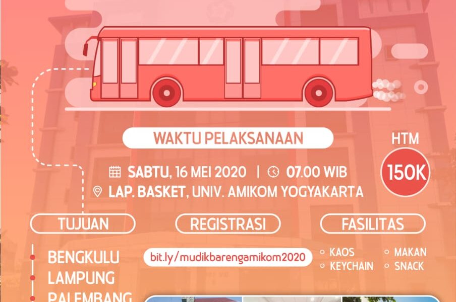 Read More🚌🚌Hallo guys🚌🚌 Lebaran telah dekat tiket transportasi mahal jadi gabisa pulang ke kampung halaman ? Mau mudik tapi sendirian? Ayo ikutan mudik bareng amikom yang merupakan kegiatan tahunan diselenggarakan pihak Universitas AMIKOM Yogyakarta Persyaratan : Mahasiswa/i amikom Biaya 150k Surat Keterangan Sehat Surat persetujuan Wali (bisa di unduh di sini http://bit.ly/ijinmudik) Jangan lupa ikuti dan […]