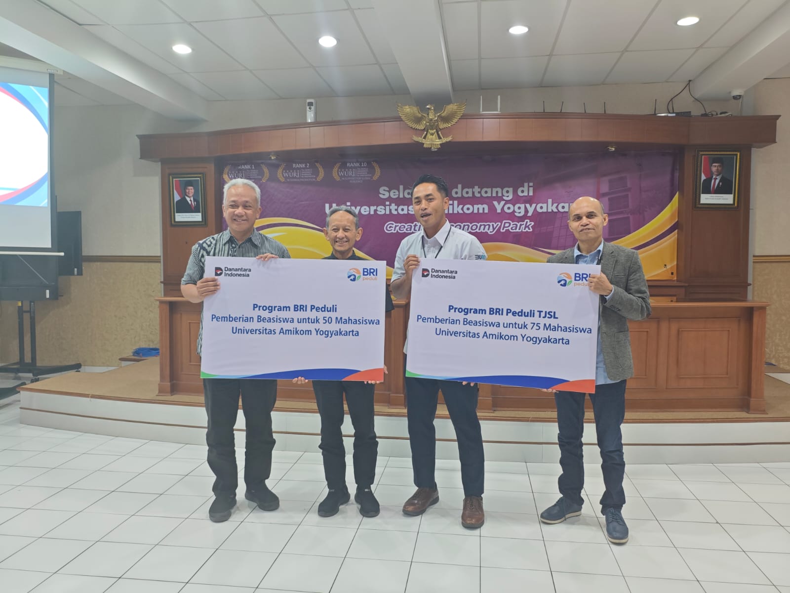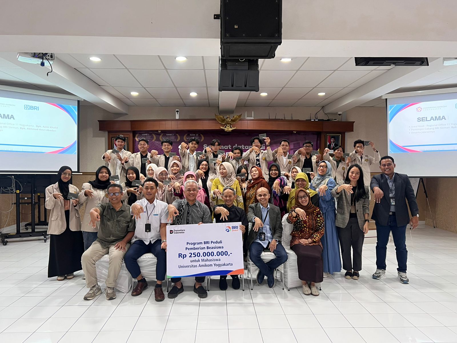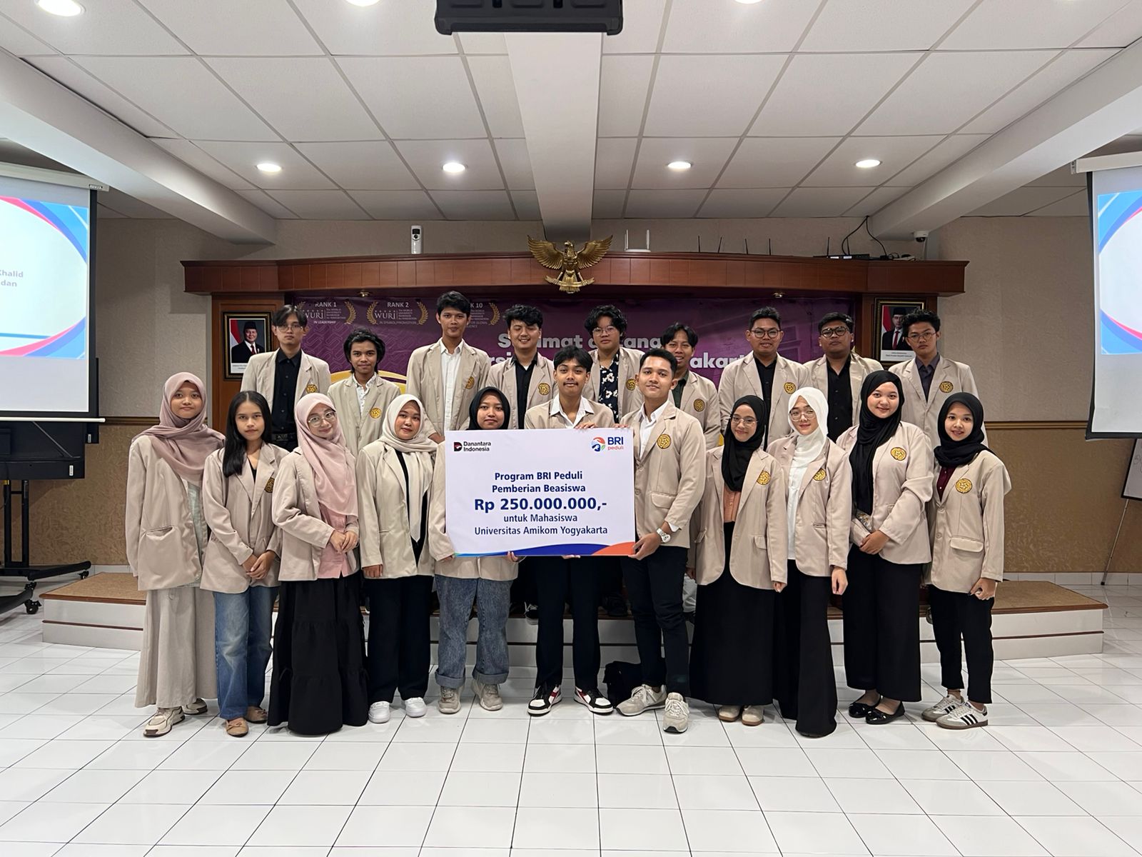 Bank Rakyat Indonesia (BRI) memberikan Beasiswa Prestasi kepada 125 orang mahasiswa Universitas Amikom Yogyakarta. Total beasiswa yang disalurkan senilai Rp250 juta, yang diberikan kepada 125 mahasiswa. Penyerahan Beasiswa tersebut, secara simbolis dilakukan oleh Akmad Amri Abadan, Pemimpin Cabang BRI Sleman, bersama Hani Widyasari (Funding & Transactions Manager) dan Azmi Khalid (Area Head BRI Yogyakarta) kepada para mahasiswa penerima di Ruang Citra 1 Universitas AMIKOM Yogyakarta, dihadiri jajaran pimpinan universitas, yayasan, dan manajemen BRI.