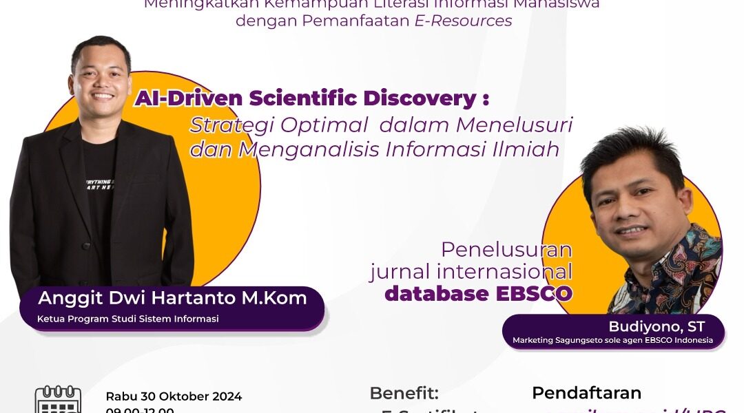 Read MoreYogyakarta, 29 Oktober 2024 – Dalam rangka meningkatkan kemampuan literasi informasi mahasiswa, Amikom Resource Center mengadakan Information Literacy Training dengan tema “Meningkatkan Kemampuan Literasi Informasi Mahasiswa dengan Pemanfaatan E-Resources”. Acara ini bertujuan memberikan wawasan kepada mahasiswa terkait strategi pemanfaatan sumber daya digital untuk mendukung kebutuhan akademik dan penelitian. Kegiatan yang dihadiri puluhan mahasiswa ini dibuka […]