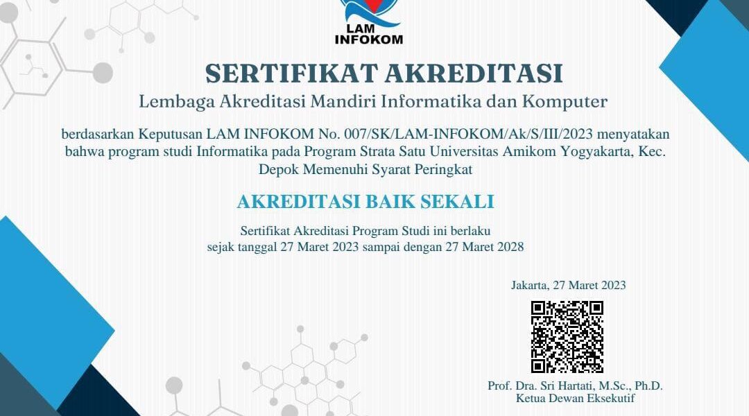 Read MoreProgram Studi sistem informasi Fakultas Ilmu Komputer Universitas AMIKOM Yogyakarta berhasil mendapatkan Akreditasi Unggul oleh Lembaga Akreditasi Mandiri Program Studi Informatika dan Komputer (LAM Infokom). Akreditasi Unggul adalah peringkat akreditasi tertinggi yang diperoleh perguruan tinggi atau program studi yang memenuhi kriteria akreditasi dari Badan Akreditasi Nasional Perguruan Tinggi (BAN-PT). Pemberian Akreditasi Unggul ini didasarkan pada […]