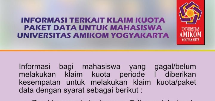 Read MoreKepada: Segenap Mahasiswa/i Universitas AMIKOM Yogyakarta Assalamuálaikum wr wb Berdasarkan Surat Edaran Rektor No 03/SE.REK/III/2020 tertanggal 23 Maret 2020 serta informasi terkait teknis pemberian subsidi kuota bagi mahasiswa yg disampaikan melalui website www.amikom.ac.id tertanggal 6 April 2020 oleh Direktorat Inovation Center, maka bersama ini disampaikan beberapa hal sebagai berikut: Pemberian subsidi kuota yang direncanakan akan […]