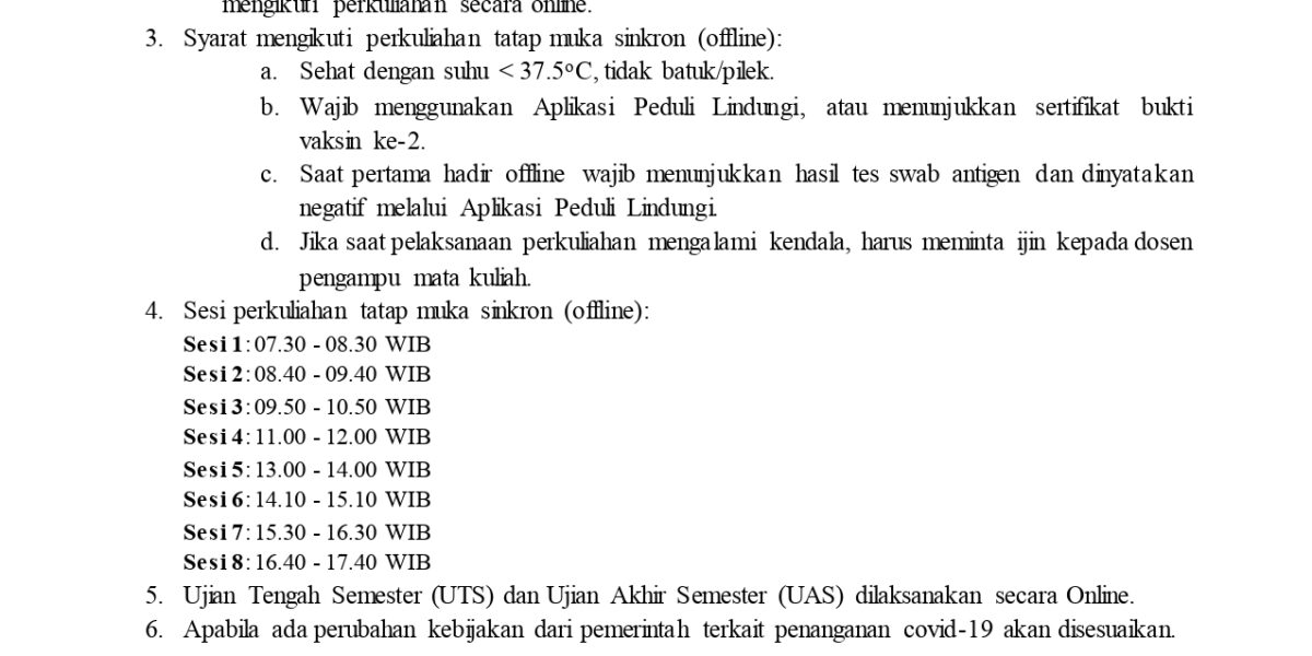 Read MoreUndangan Sosialisasi Perkulihan Untuk Seluruh Mahasiswa dapat di download pada lampiran berikut 009 Sosialisasi Mahasiswa Perkuliahan Genap 2021-2022