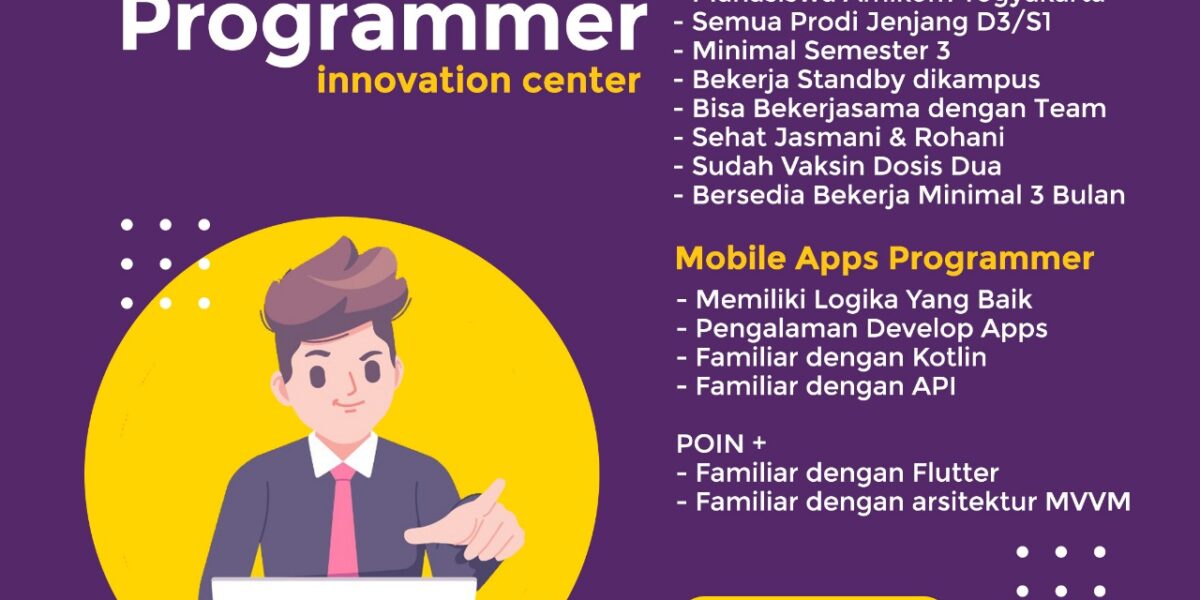 Read MorePersyaratan Umum: Mahasiswa UNIVERSITAS AMIKOM YOGYAKARTA dari semua ProgramStudi (telah menempuh semua teori dan tinggal mengerjakan TA / Skripsi) Sehat Jasmani dan Rohani Belum pernah ikut Student staff Sanggup bekerja atau standby selama 8 jam / hari Sanggup bekerja dalam tim Komunikatif Bersedia bekerja selama minimal 3 Bulan. Kelengkapan Lamaran: Melampirkan Surat Lamaran & lamp; CV Foto copy KTM, KTP, Salinan Nilai Kumulatif, […]