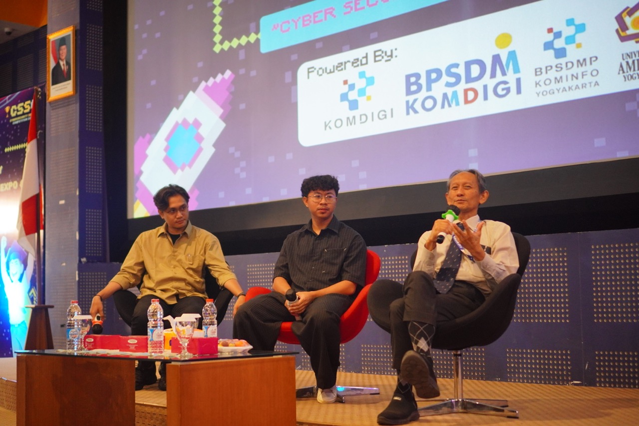 Sesi talk show menghadirkan Prof. Dr. Muhammad Suyanto, M.M., Rektor Universitas AMIKOM Yogyakarta, yang menyoroti pentingnya keamanan siber dalam pengelolaan aset digital dan pengembangan teknologi. Selain itu, hadir pula Muhammad Fani Akbar, alumni Teknik Komputer Universitas AMIKOM Yogyakarta yang saat ini berkarier sebagai praktisi keamanan siber di industri global, yang berbagi pengalaman mengenai kebutuhan kompetensi dan kesiapan karier di bidang tersebut.