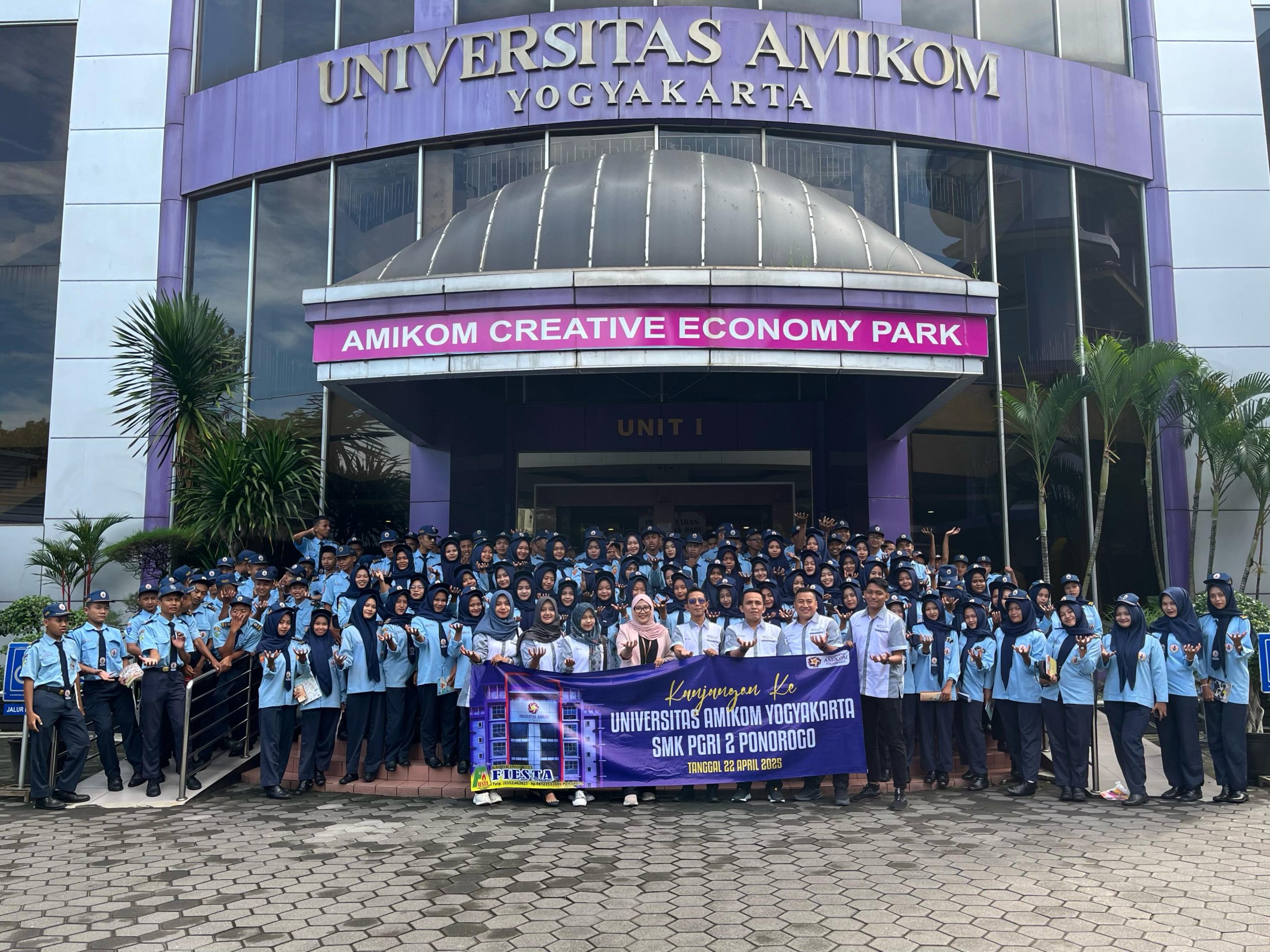 Yogyakarta, 22 April 2025 — Ratusan siswa dari SMK PGRI 2 Ponorogo melakukan kunjungan edukatif ke Universitas AMIKOM Yogyakarta dalam rangka memperluas wawasan mengenai dunia perkuliahan dan industri kreatif digital. Kegiatan yang berlangsung di ruang Cinema AMIKOM ini diisi dengan pemaparan program studi, pengenalan unit industri kampus, hingga sesi inspiratif dari pelaku industri teknologi.