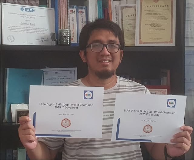 Nur Arifin Akbar, alumni Program Magister Informatika Universitas AMIKOM Yogyakarta, meraih kemenangan membanggakan pada ajang Digital Skills Cup 2025. Arifin berhasil meraih juara pada dua kategori sekaligus: Computer Security dan IT Developers, mewakili Università degli Studi di Palermo, Italia, tempat ia saat ini menempuh studi doktoralnya. Digital Skills Cup 2025 sendiri merupakan kompetisi global bergengsi […]