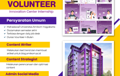 Selamat datang di kesempatan emas untuk bergabung dengan Program Oprec Volunteer di Innovation Center Amikom Yogyakarta! Kami membuka lowongan untuk para volunteer yang antusias dan berbakat untuk mendukung berbagai aktivitas inovatif di kampus. Program ini dirancang untuk memberikan pengalaman berharga, mengasah keterampilan, dan membuka peluang pengembangan diri bagi mahasiswa. Yuk, simak informasi lengkapnya di https://blog.amikom.ac.id/volunteer