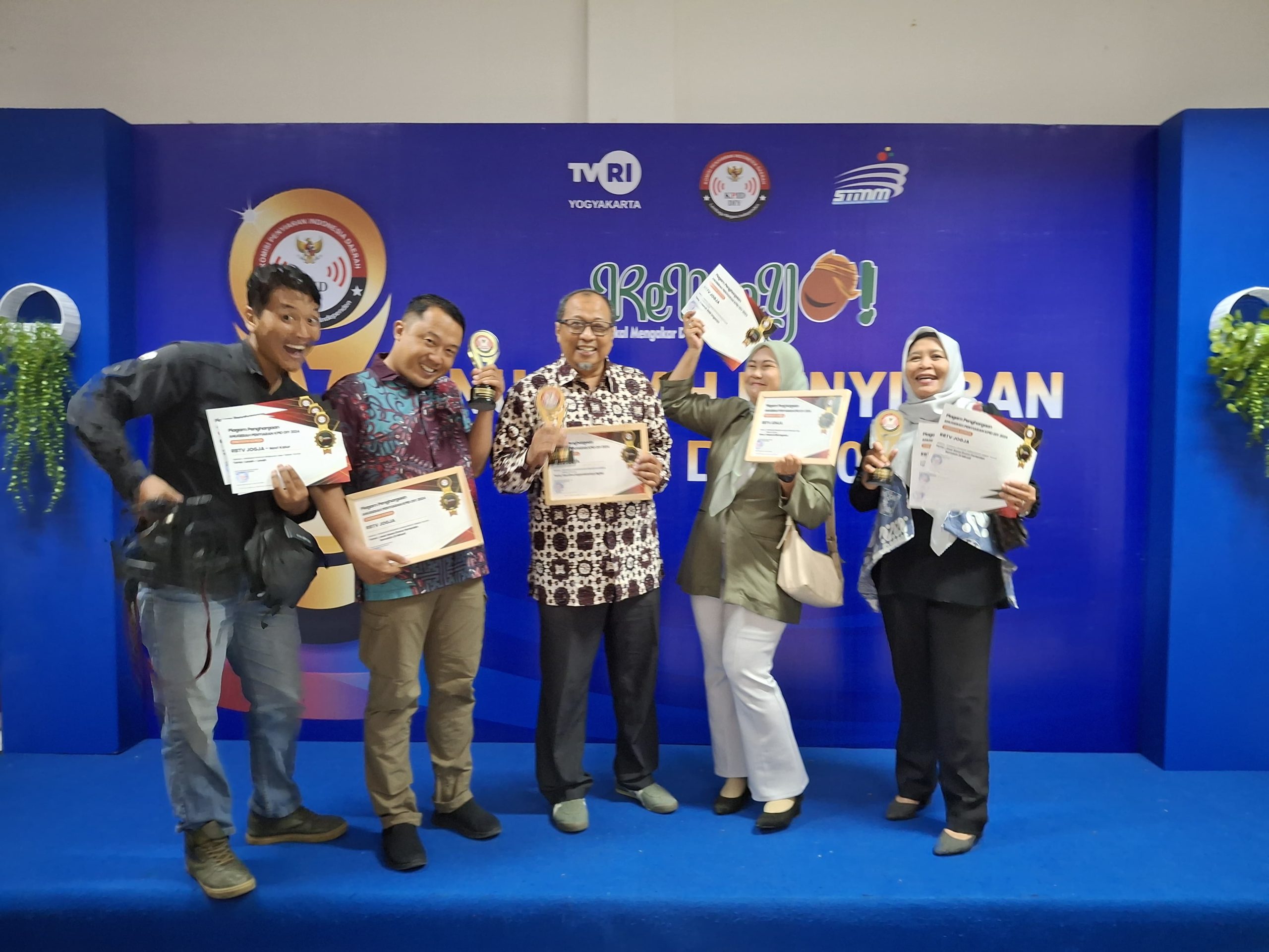 Yogyakarta, 10 November 2024 — RBTV Yogyakarta berhasil meraih tiga penghargaan di ajang Anugerah Penyiaran Komisi Penyiaran Indonesia Daerah (KPID) DIY 2024 yang diadakan di Auditorium STMM MMTC Yogyakarta, Minggu (10/11/2024) malam. Tiga penghargaan tersebut adalah Pemenang Produksi Iklan Layanan masyarakat terbaik Televisi dengan Tema Identitas Kependudukan Digital, Pemenang Program Siaran Berita Terbaik Televisi dengan Program “Jasa Sewa Drone Pertanian semakin diminati”, Pemenang Program Siaran Berbahasa Jawa Terbaik Televisi dengan Program “Kawruh SDB Ungaran”.