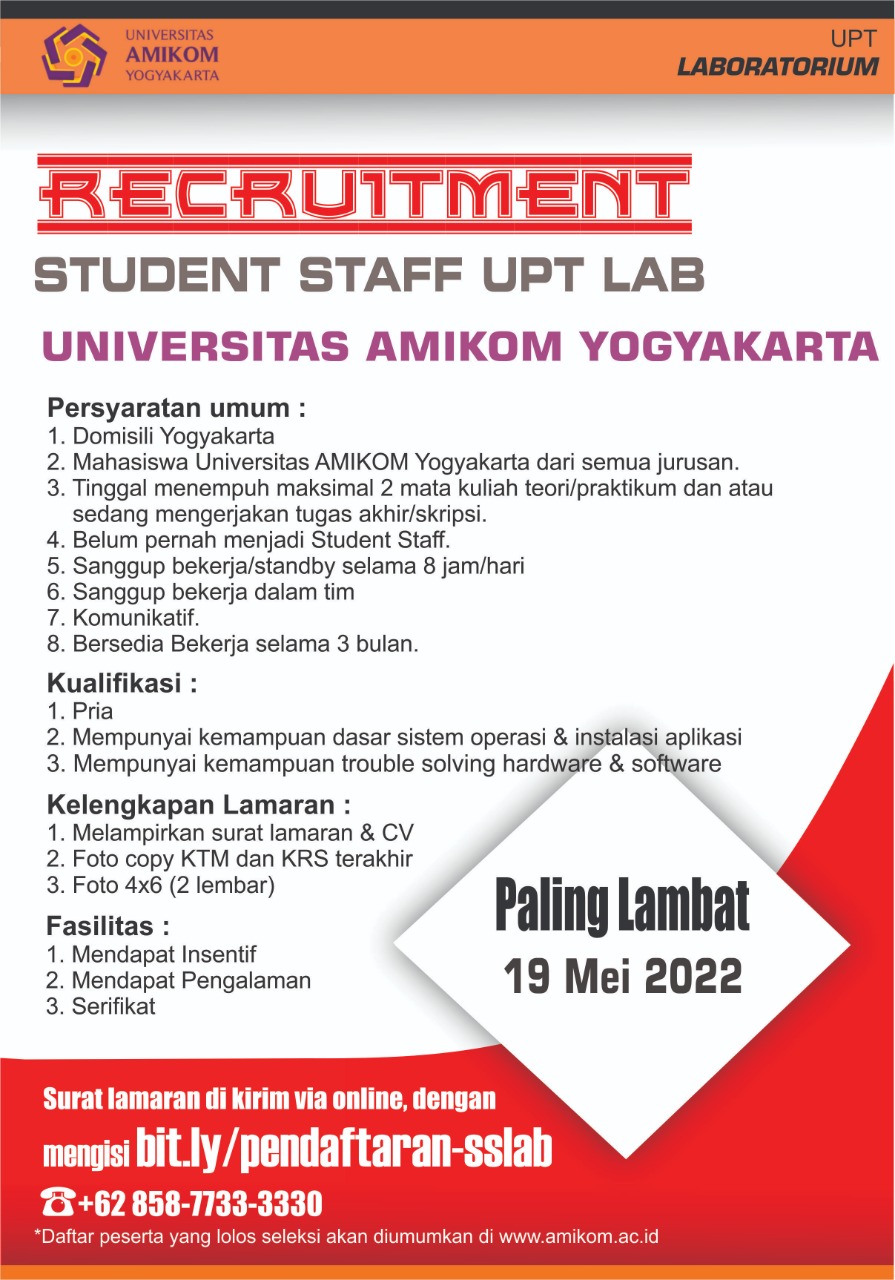 Recruitment Student staff UPT Lab Universitas AMIKOM Yogyakarta