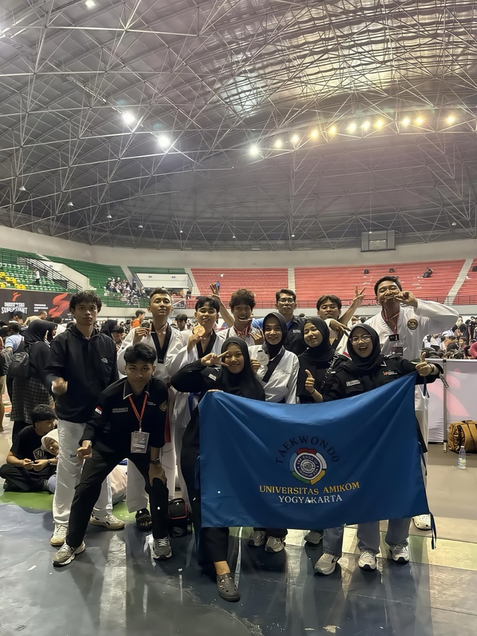 Yogyakarta, 24 Desember 2025 – Unit Kegiatan Mahasiswa (UKM) Taekwondo Universitas AMIKOM Yogyakarta berhasil meraih total sembilan medali pada ajang Indonesia Super Fight Taekwondo Championship III Tahun 2025 yang digelar selama tiga hari, Minggu–Selasa (21–23 Desember 2025), di GOR Amongrogo, Yogyakarta. Kompetisi tingkat nasional ini mempertemukan ratusan atlet dari sekolah, klub, hingga perguruan tinggi se-Indonesia, serta memperebutkan Piala Ketua Umum KONI Pusat, yang dikenal sebagai salah satu simbol prestasi penting dalam taekwondo nasional.