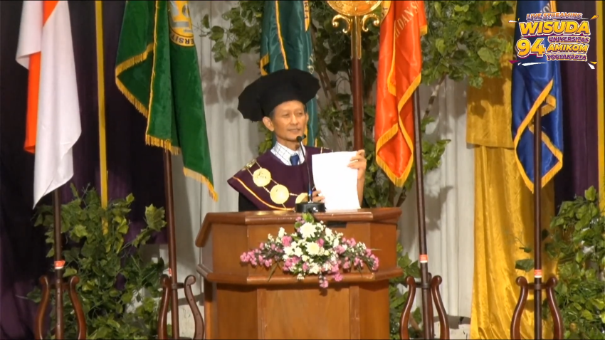 Yogyakarta, 26 April 2025 — Universitas AMIKOM Yogyakarta kembali menyelenggarakan Wisuda ke-94 pada Sabtu, 26 April 2025 di Grand Pacific Convention Hall, Jalan Magelang, Yogyakarta. Sebanyak 776 lulusan dari program diploma, sarjana, dan magister resmi dikukuhkan dalam acara yang berlangsung khidmat dan penuh haru. Prosesi ini menjadi tonggak baru dalam komitmen Universitas AMIKOM Yogyakarta untuk mencetak lulusan berdaya saing global dengan jiwa kreatif dan inovatif.